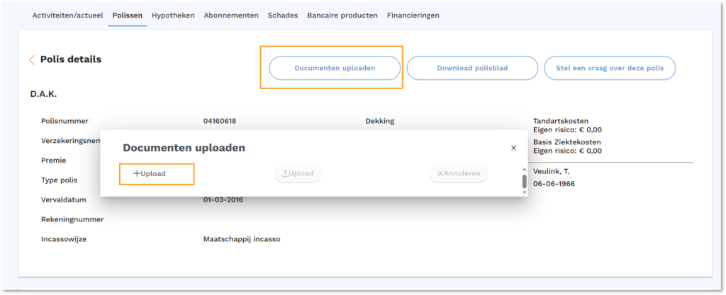 Omdat het Klantportaal momenteel nog in ontwikkeling is zit deze mogelijkheid alleen nog op de poliskaart!